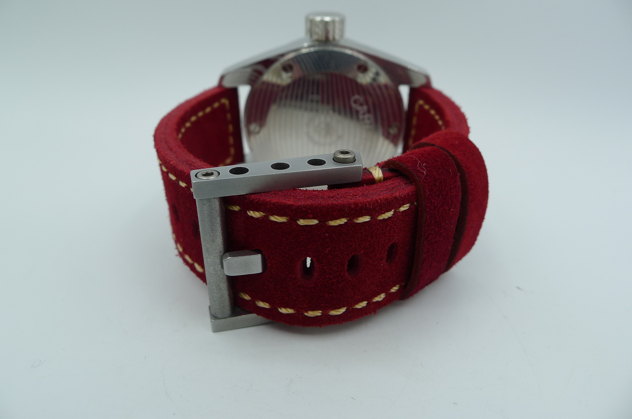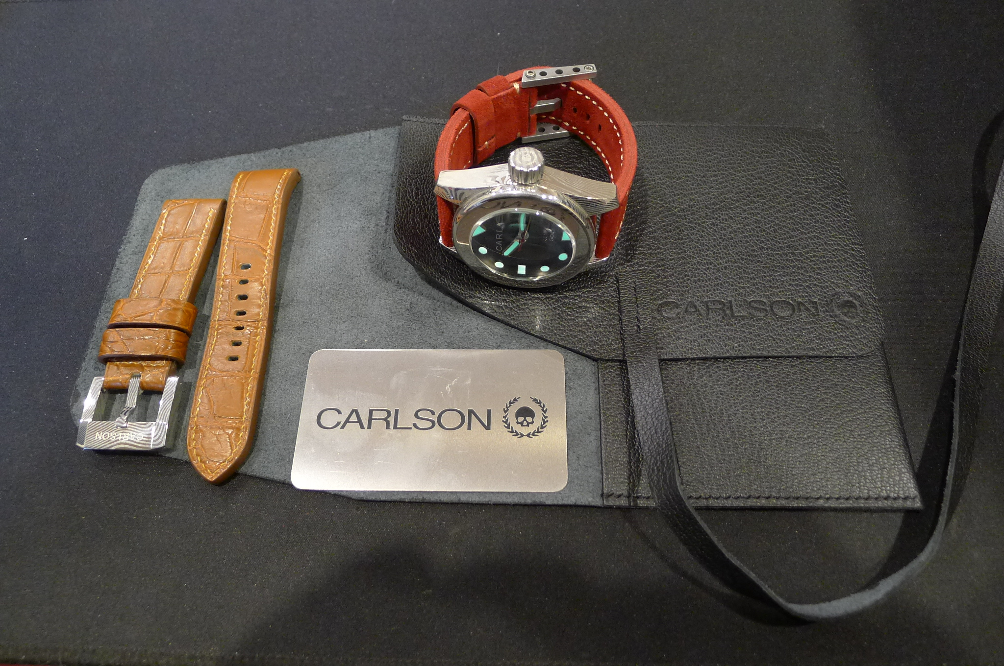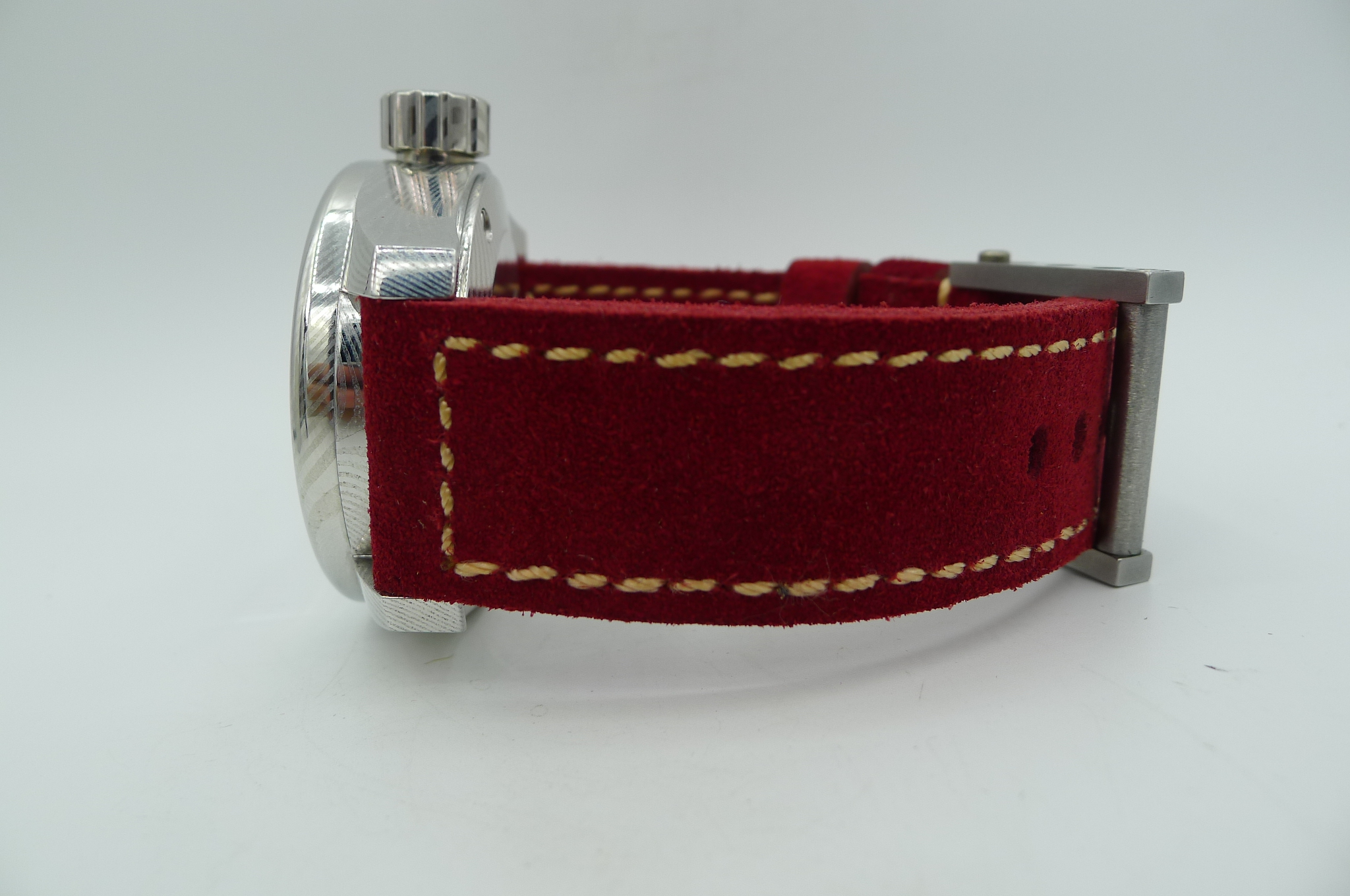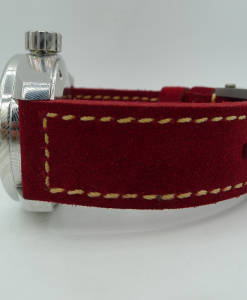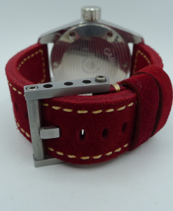 STRAP – 2 X STRAPS – RED SUEDE LEATHER WITH TITANIUM ROLLER BUCKLE & OEM HAVANA ALLIGATOR WITH DAMASCUS STEEL TANG BUCKLE