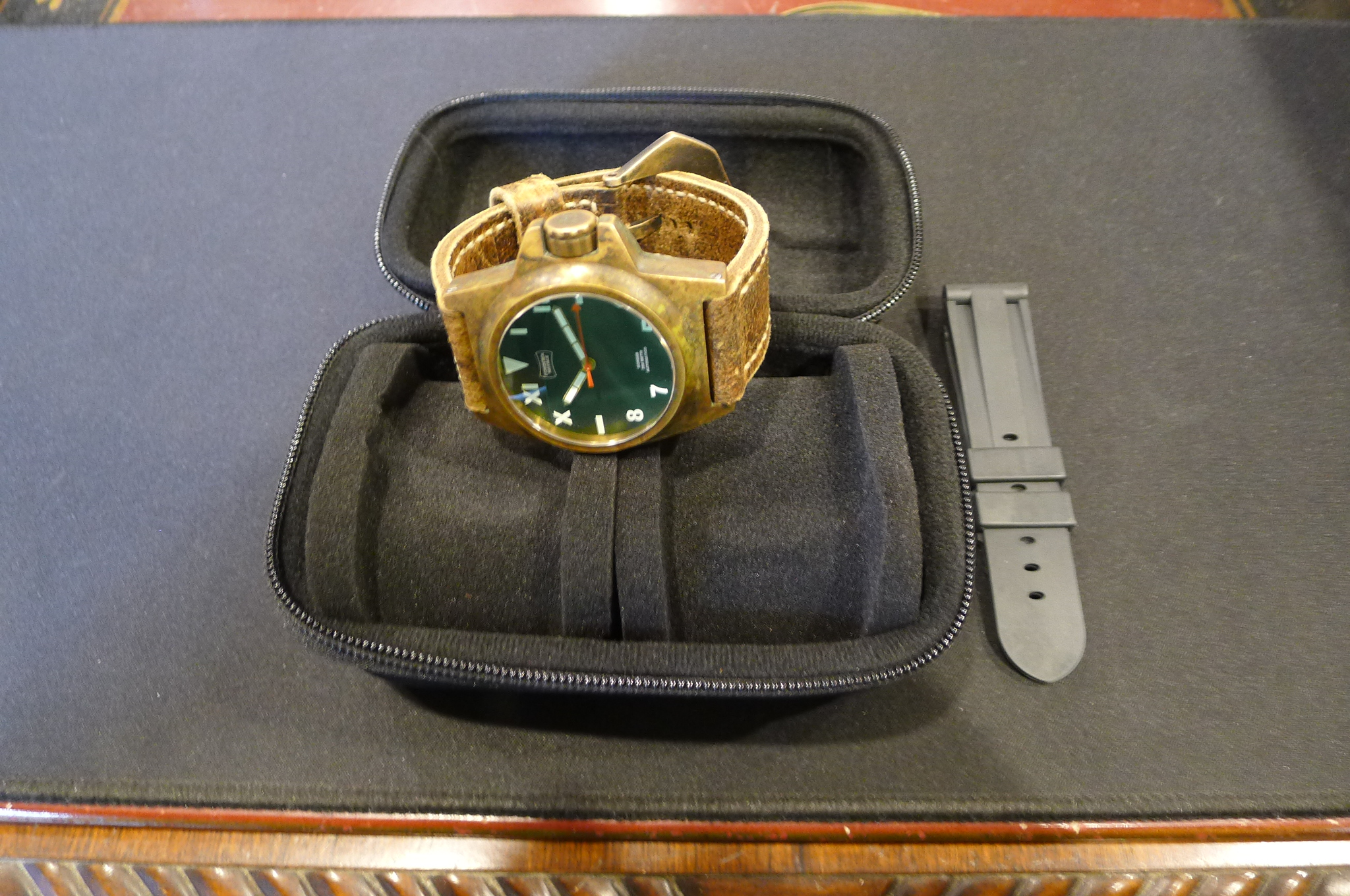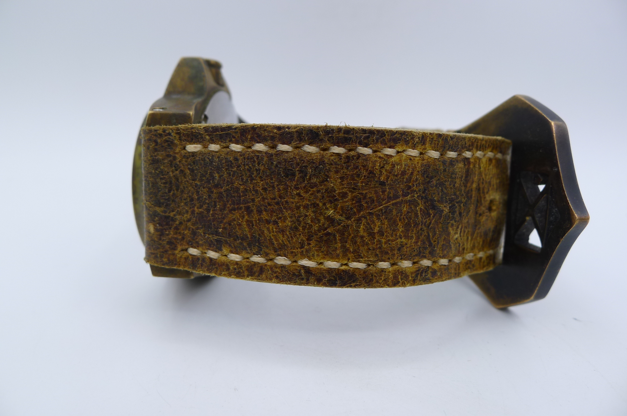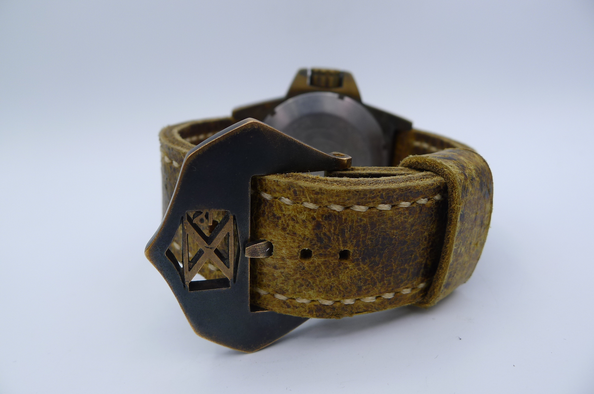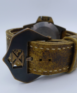STRAP – 2 X STRAPS – CUSTOM TAN LEATHER WITH BRONZE TANG BUCKLE & BLACK RUBBER
