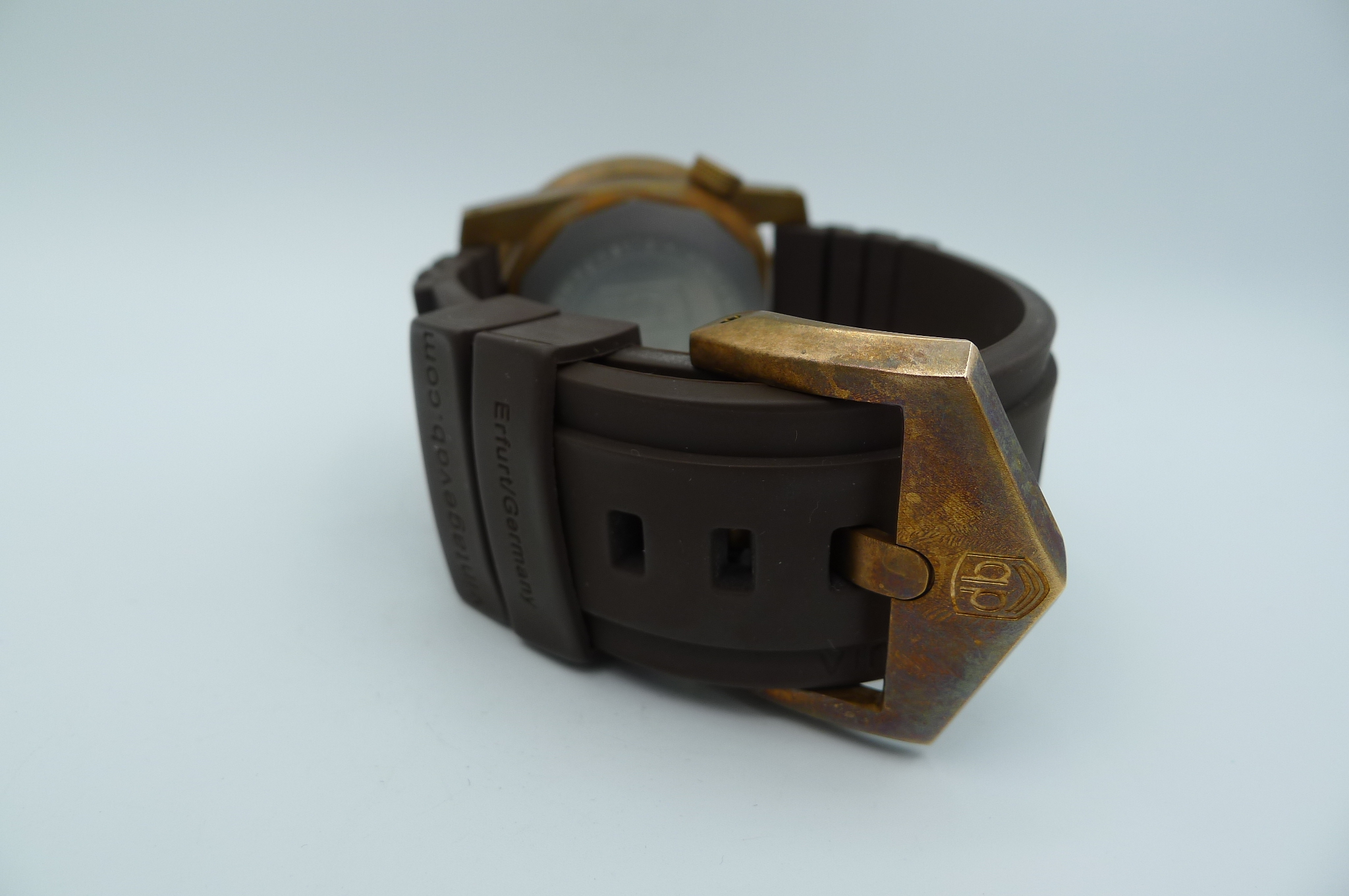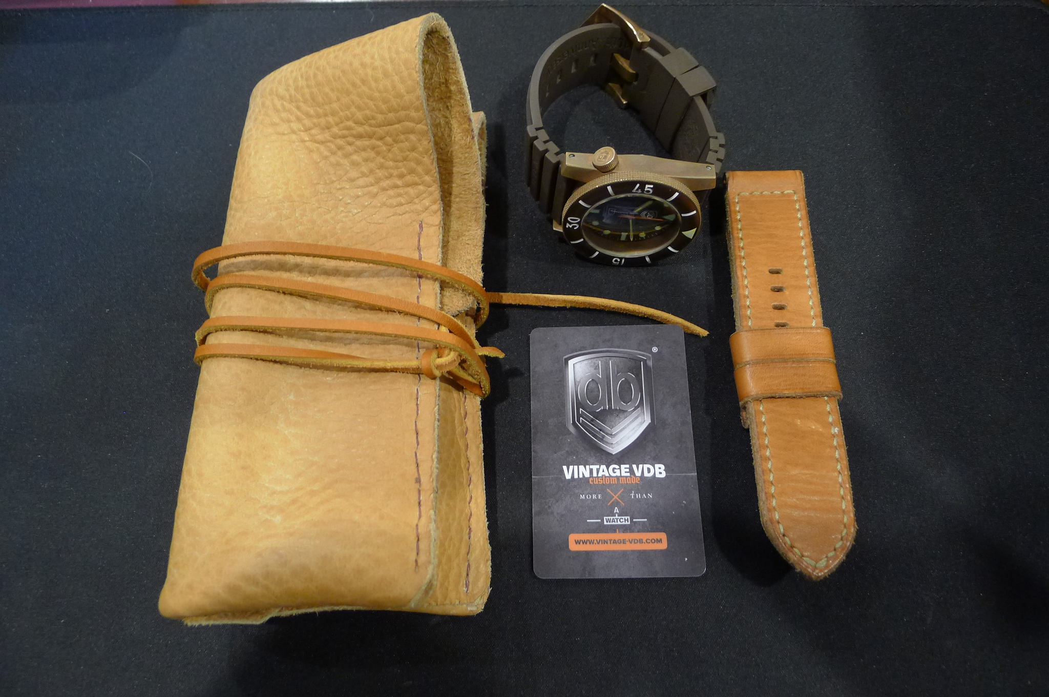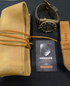 STRAP – 2 X STRAPS – BROWN VDB RUBBER WITH BRONZE TANG BUCKLE & TAN LEATHER
