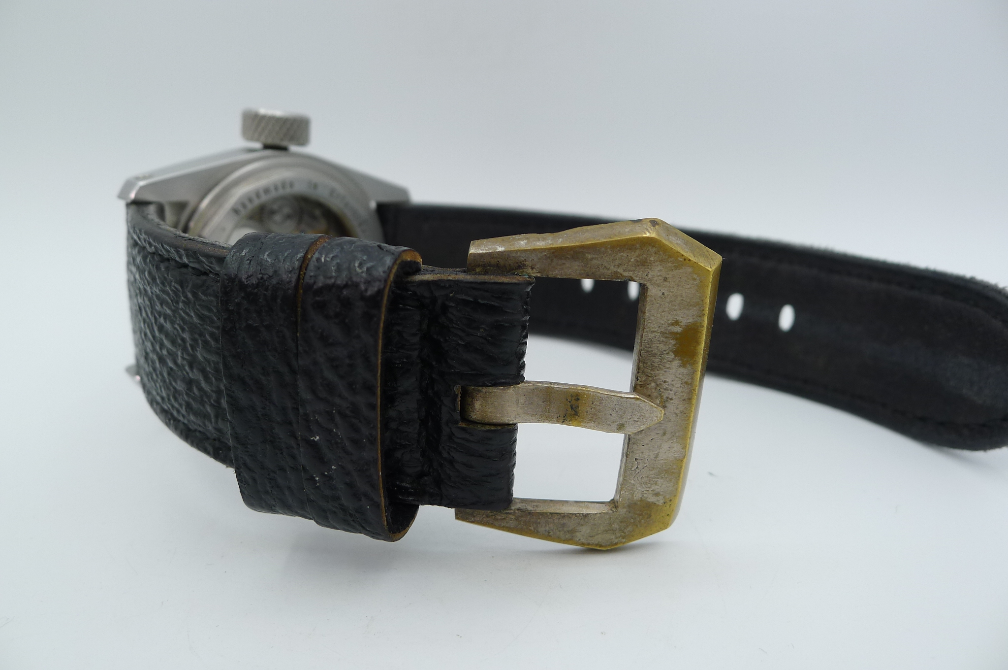 STRAP – 3 X STRAPS – BLACK SHARK WITH VINTAGE STEEL TANG BUCKLE, BLACK VDB RUBBER WITH STEEL TANG BUCKLE & TAN LEATHER WITH SEWN IN STEEL TANG BUCKLE