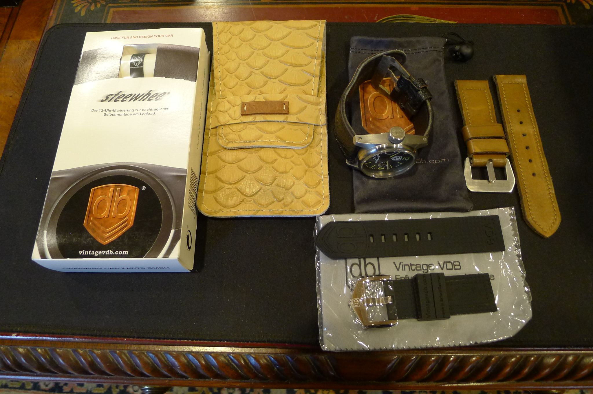 BOX/PAPERS – AS SHOWN WITH VDB LEATHER POUCH, BAG & VDB STEEWHEEL
